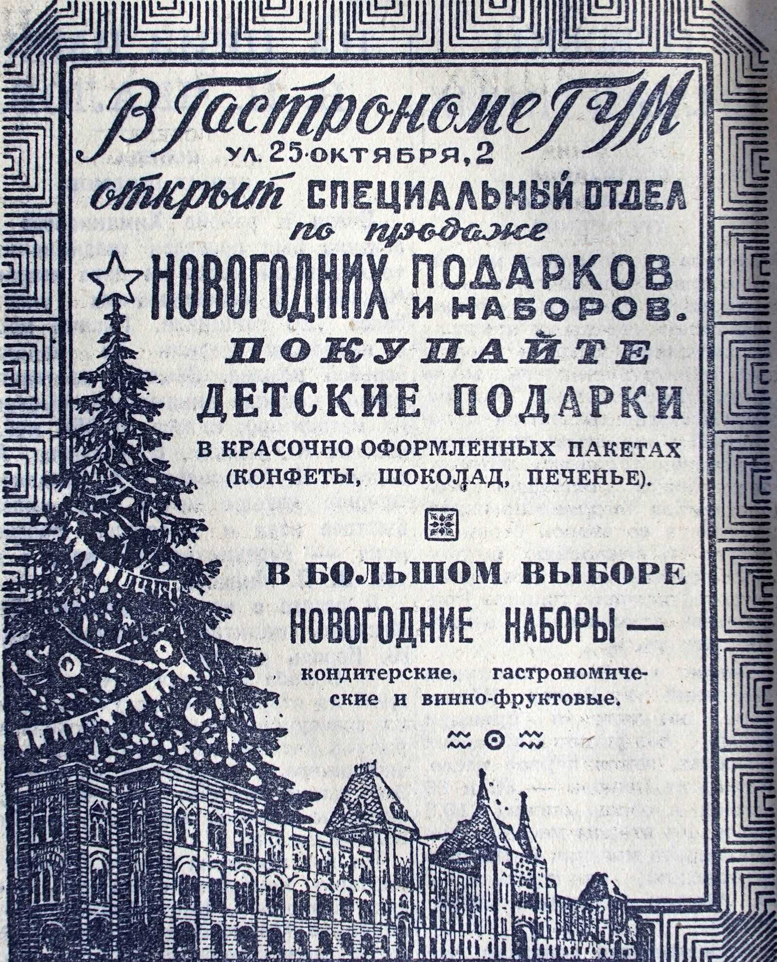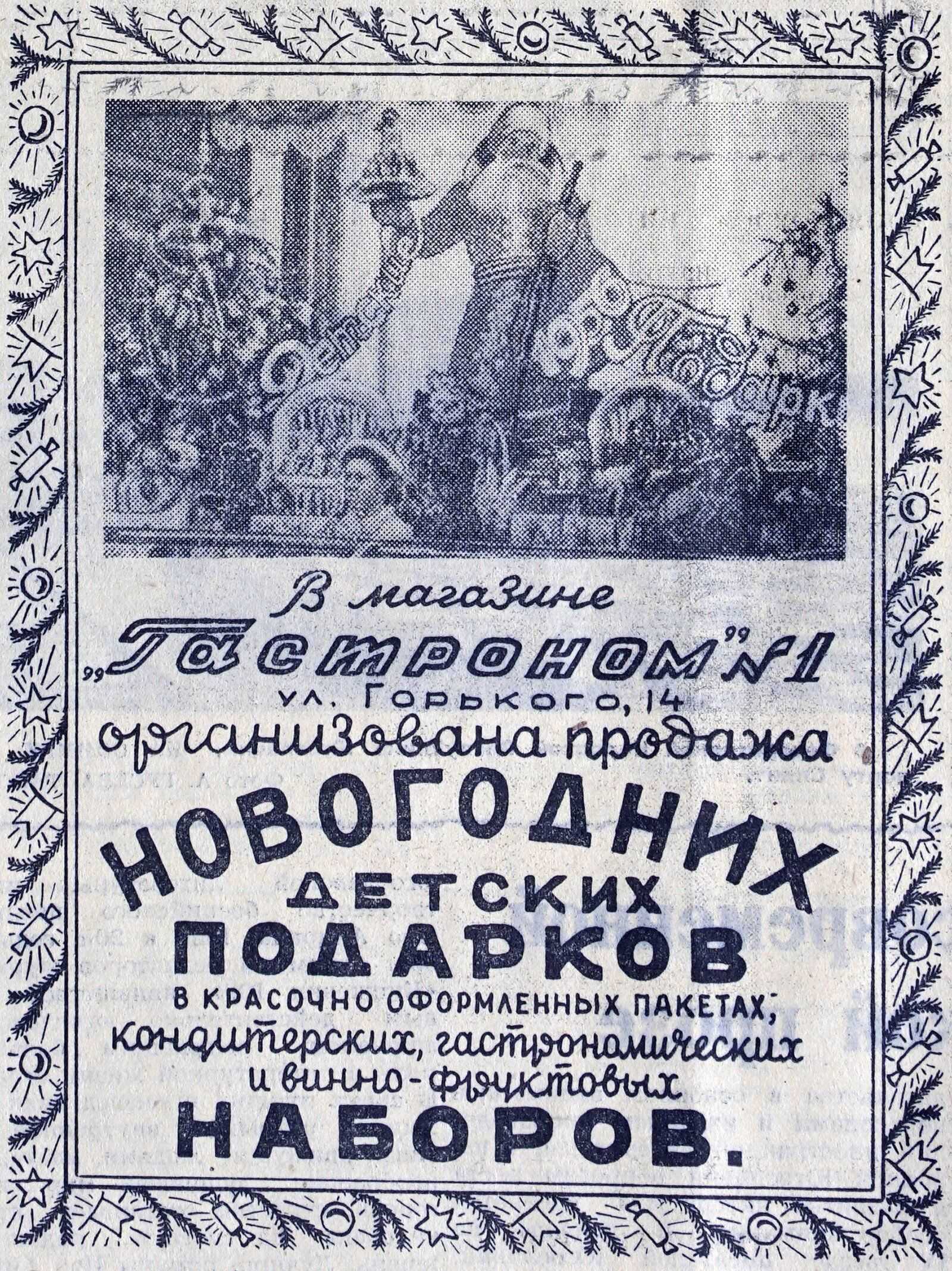 Город украшали к празднику, организовывали уличные ярмарки, елочные базары. Все магазины обязаны были выбрасывать на прилавки наборы новогодних подарков. В некоторые годы для развоза поздравлений и подарков городские власти даже выделяли по несколько сотен легковых такси и грузовиков.