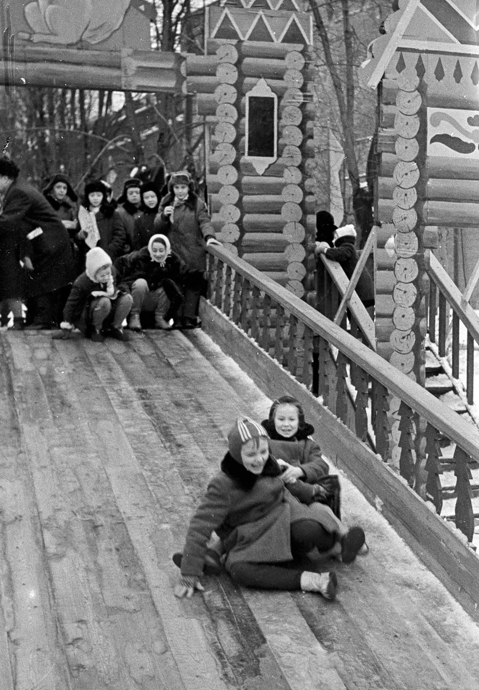 На Ленинских горах устраивались массовые катания со специально залитых заранее ледяных горок. Так что Новый год можно было встретить и на свежем воздухе.