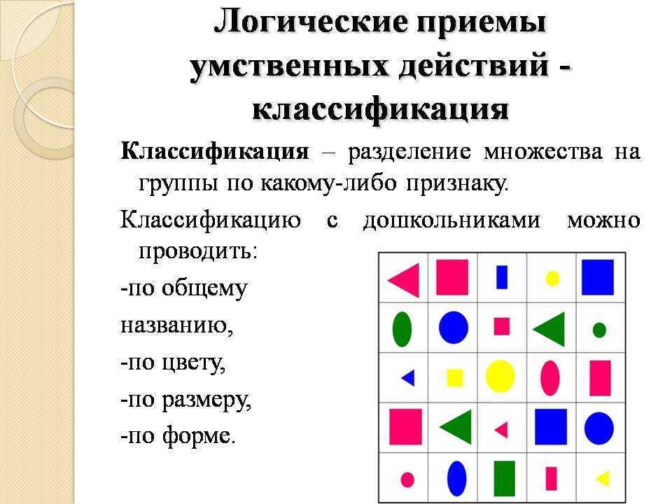 Тренировки логических операций: понятий, суждений, умозаключений, открытых занятий должны начинаться с младшего дошкольного возраста, как только у ребенка появится определенный опыт и адаптация к окружающей жизни и развитая речь.