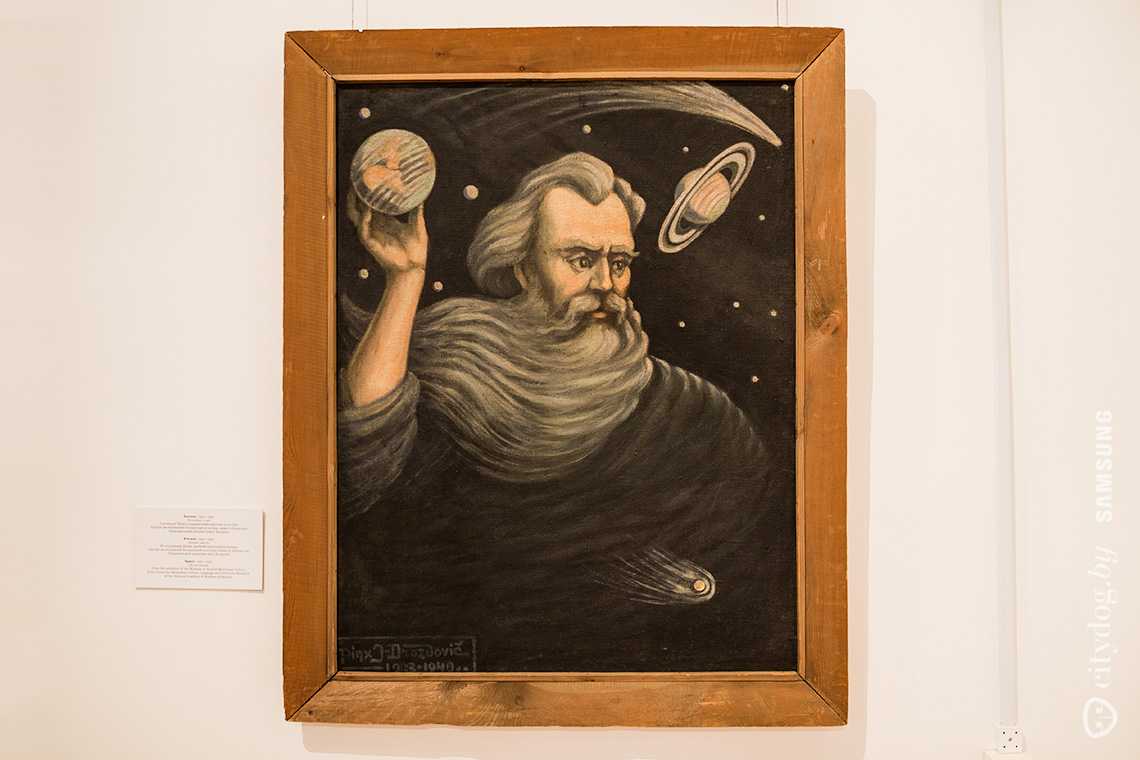 Отсутствие систематических знаний по физике, математике и химии не мешает Язепу не то что понять, как устроена Вселенная, но и создать свою теорию происхождения Солнечной системы. Причем художник подчеркивает, что занимается этим «не дзеля забавы, а дзеля навукі».