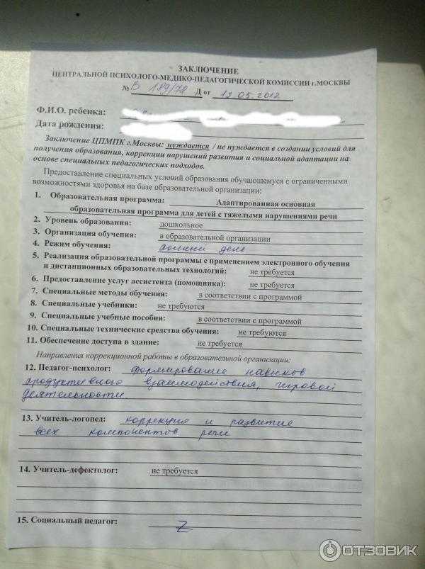 Если проблема существует и она выявлена, Комиссия посоветует вам, как ее устранить (не строго проинструктирует вас, но точно посоветует). Если ребенок здоров, нет необходимости беспокоиться. Да, в заключении ПМПК говорится, может ли ребенок посещать общеобразовательное учреждение, нуждается ли он в специальном курсе, нуждается ли в логопеде или других занятиях.