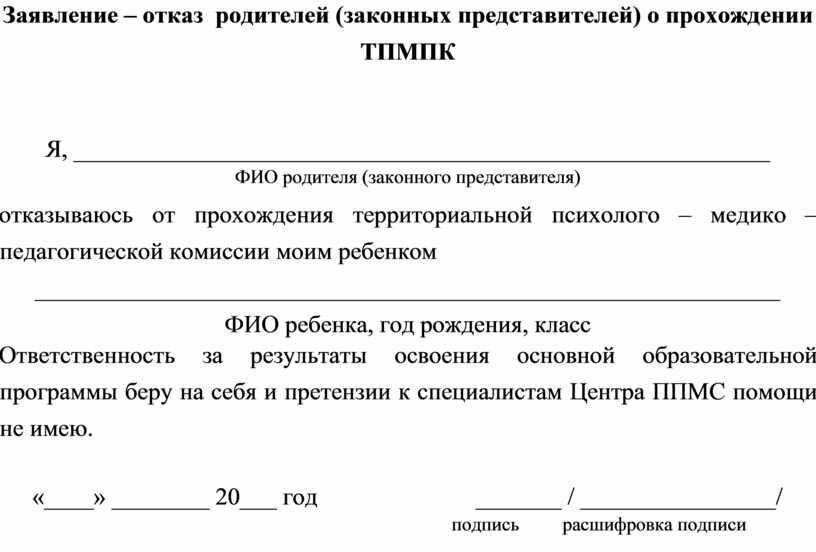 Родители могут отказаться от ПМПК без объяснения причин отказа. Это не обязательно должно быть в письменном виде.