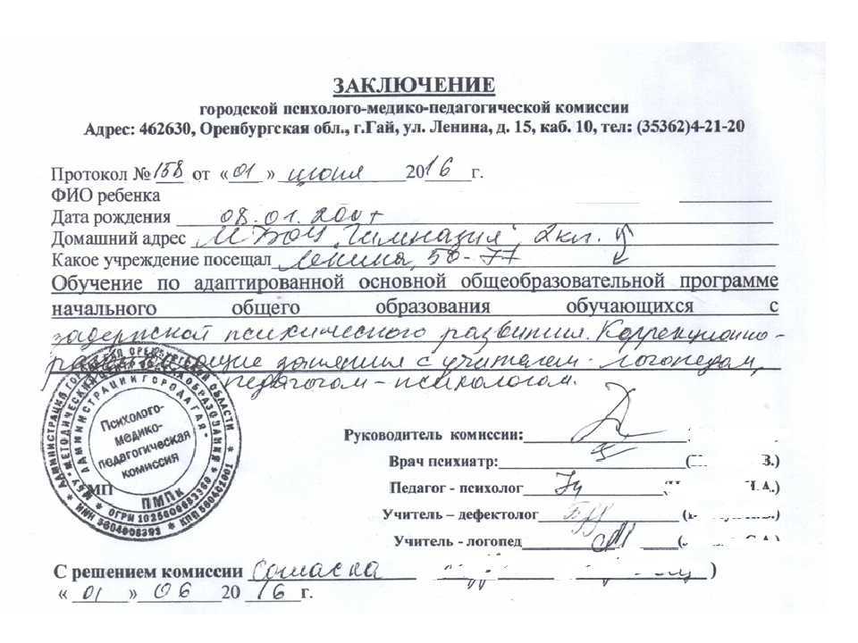 Составив заключение, специалисты представляют протокол родителям, которые должны в нём расписаться.