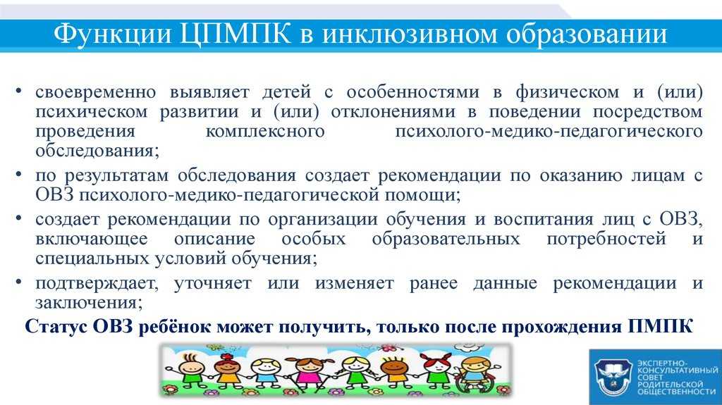 ПМПК также может дать рекомендации по оптимальным образовательным программам для ребенка, методам психолого-педагогической и медицинской поддержки, созданию специальных условий обучения. ПМПК не определяет форму обучения (полный или неполный день); это обязанность родителей и воспитателей ребенка.