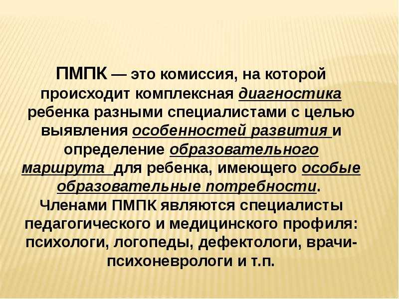Справка ПМПК (правильное название — заключение о результате медико-психолого-педагогическкой комиссии) — это документ, выдаваемый ПМПК (медико-психолого-педагогической комиссией) при наличии у человека инвалидности или ОВЗ (ограниченной возможности здоровья).