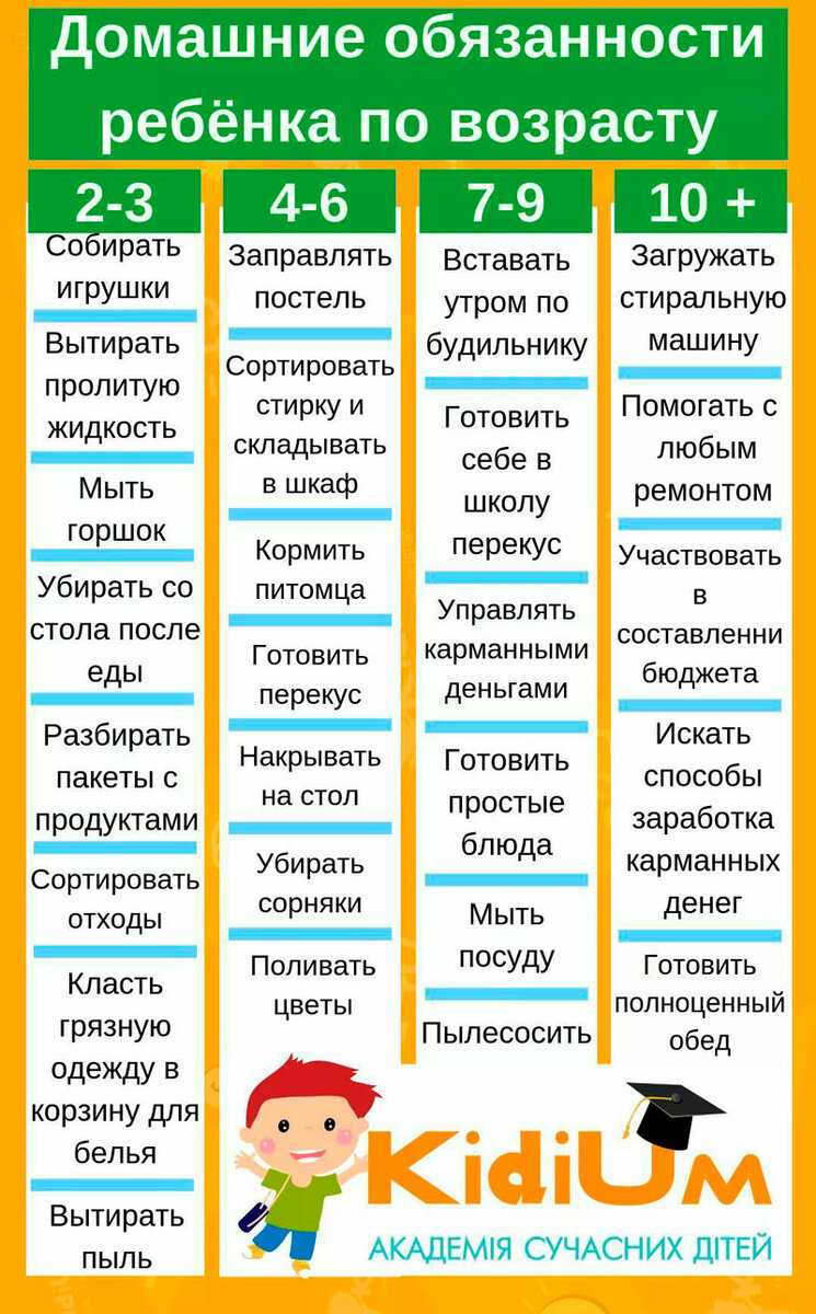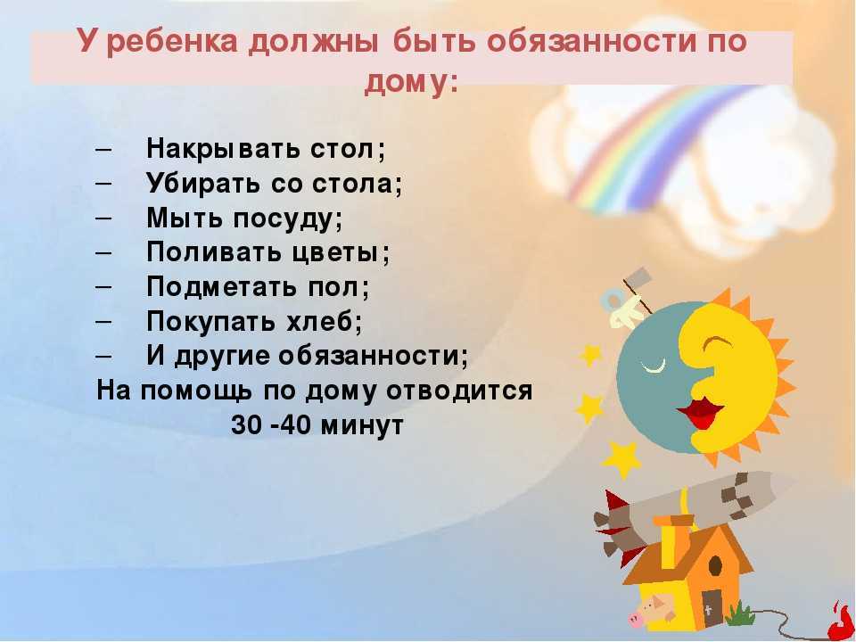 С другой стороны, дети также обязаны выполнять определенные обязательства и помогать в бытовых делах. Это научит их ответственности, самостоятельности и установкам на долгосрочные цели. Возрастные ограничения в данном случае могут быть разными и зависят от родителей и их воспитательных методов.