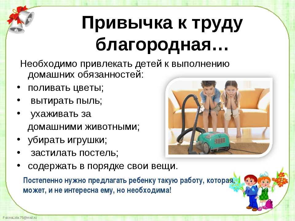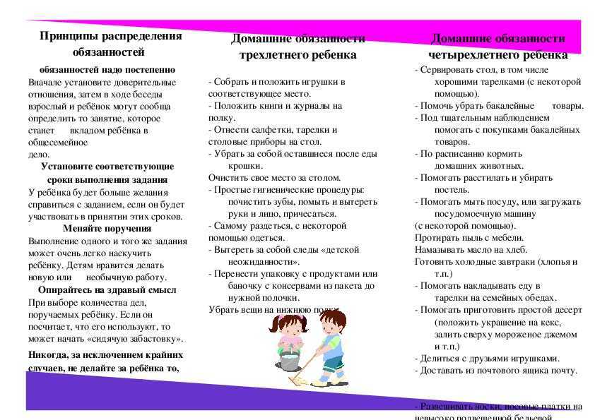 Одним из примеров обязанностей, которые можно поручить детям, является уход за домашними животными, помощь в приготовлении пищи и уборке квартиры. Смолдерные задачи помогают детям развивать навыки самостоятельности и организации, а также создают привычку к выполнению установленных правил и ответственности за свои действия.