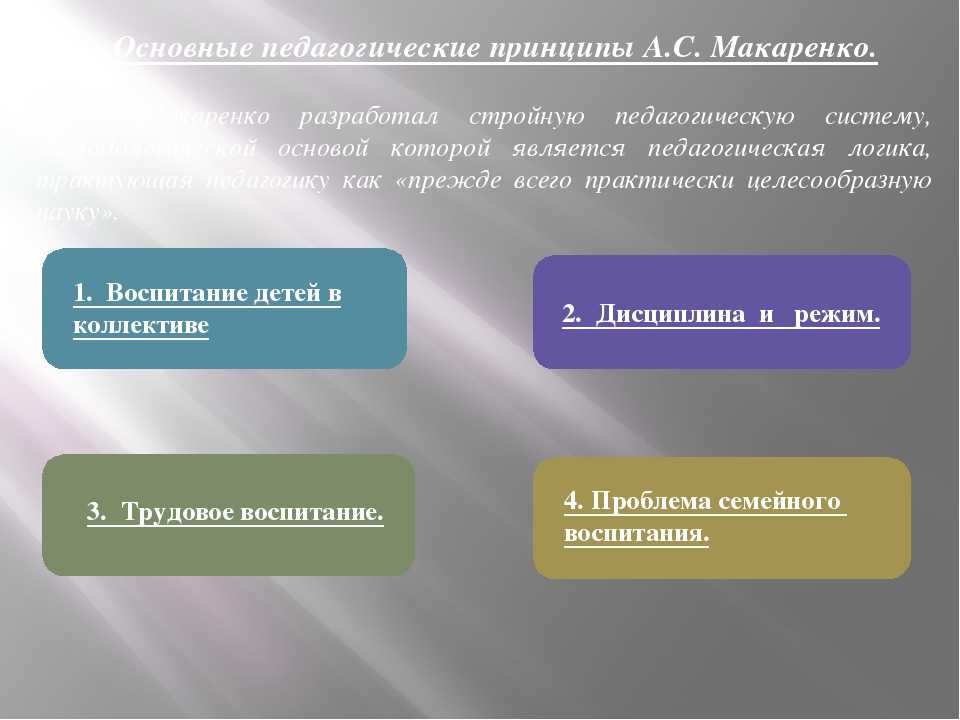 В целом, можно сказать, что педагогическая система Макаренко основывается на следующих принципах