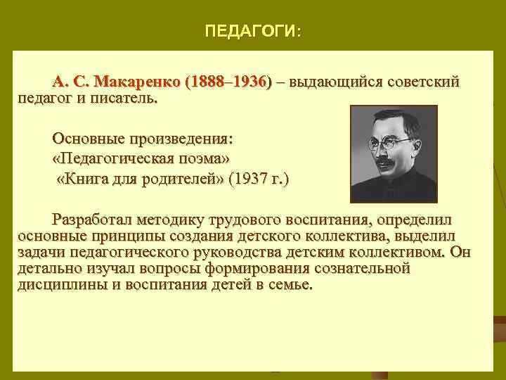 Антон Семенович Макаренко не меньшее внимание уделял семейному воспитанию. Педагог считал, что то, каким вырастет малыш, целиком зависит от родителей