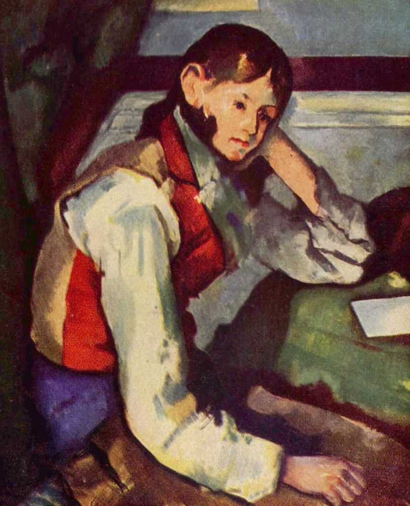 Сезанн редко прибегал к услугам профессиональных моделей. Однако, исключением является серия картин мальчика в красном жилете, которую художник рисовал с итальянца Микеланджело ди Росса. Картины из этой серии часто сравнивают с работами старых мастеров – они поражают богатством цвета, «смелые, мощные, отличающиеся той выразительностью формы, которой мы восхищаемся в работах мастеров Высокого Ренессанса, и удивительной живостью и глубиной цвета» (Мейер Шапиро). Самая известная из них — мальчик, опирающийся локтем на стол перед ним, и смотрящий на лист бумаги. В настоящее время он находится в собрании фонда Эмиля Бюрле в Цюрихе и оценивается в 109 миллионов долларов.