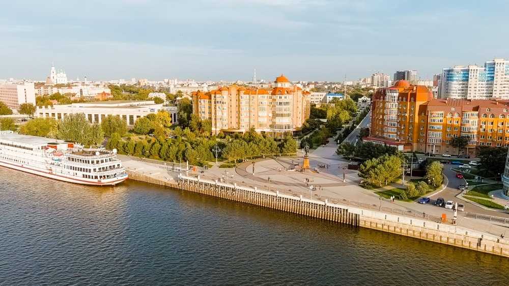 Визитная карточка Астрахани – набережная Волги. Главная прогулочная зона города протяженностью около 2 км тянется от Дворца бракосочетаний до памятника Петру I. Благоустройством набережной начали заниматься в 50-х годах XX века, когда ее нынешняя территория была частью порта.