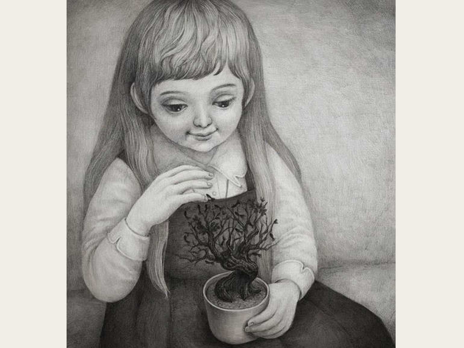 Ким Сена предпочитает чёрно-белую карандашную технику. Точное владение штрихом и тоном позволяет ей добиваться эффекта кьяроскуро.