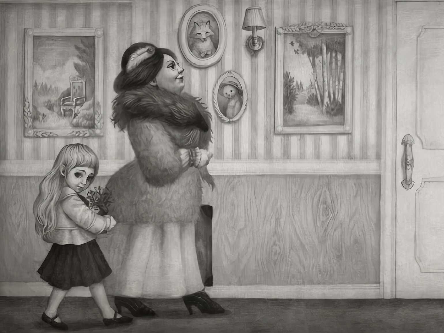 На страницах книги Леа окружена красивыми вещами, но яблоки на полу надкусаны лишь раз и брошены, а игрушки словно спят. Глаза девочки полны грусти и отчуждённости. Всё это создаёт атмосферу одинокой, блеклой жизни, в которой ничего не радует.