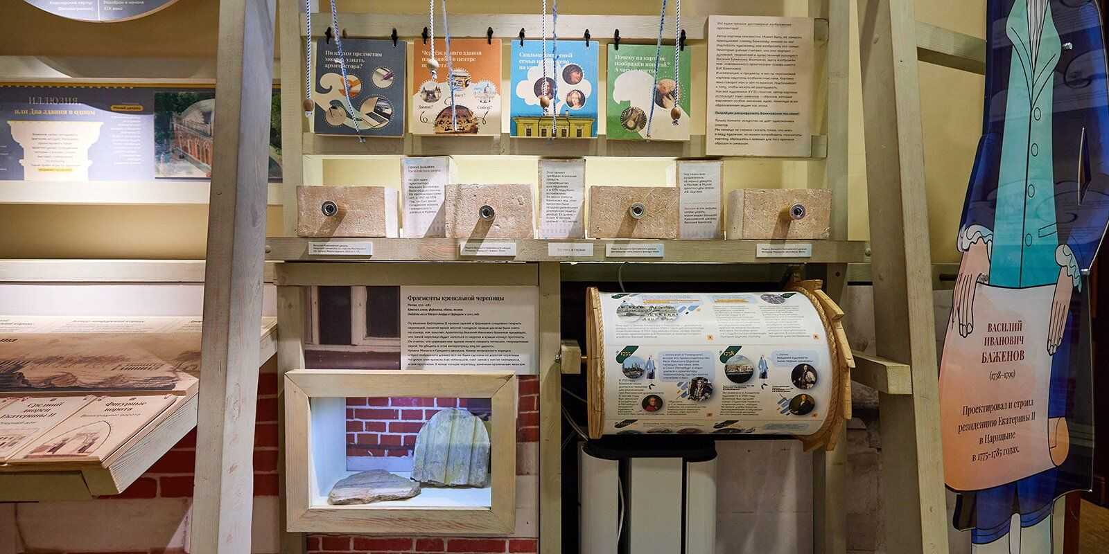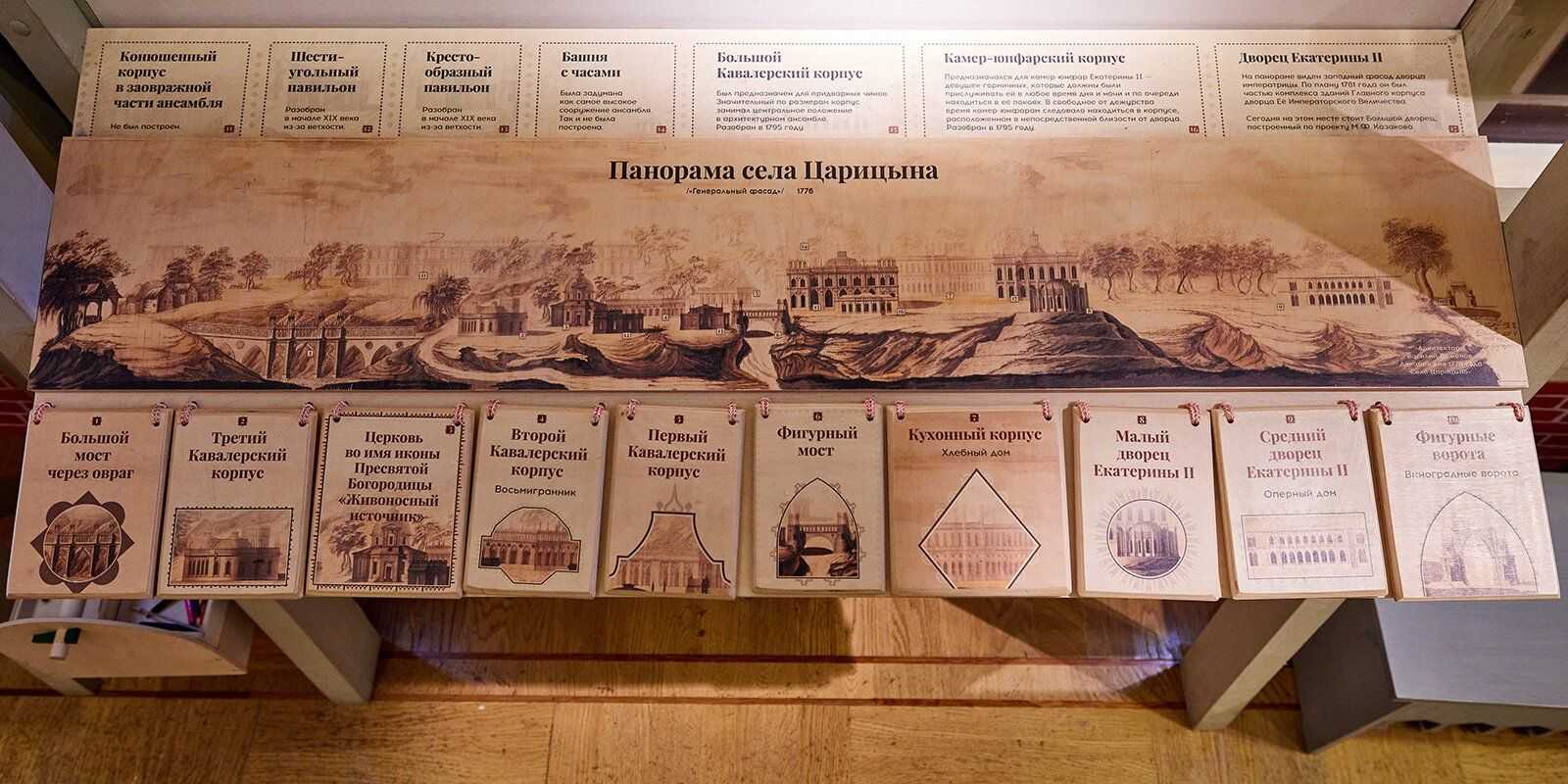 Модуль в виде огромной книги с деревянными страницами, посвященный недавнему прошлому царицынской резиденции, возможно, навеет воспоминания о собственном детстве бабушкам и дедушкам. В 1920–1960-е годы на территории современного музея-заповедника находился поселок Ленино. Многие москвичи помнят, как выглядели эти постройки раньше, и смогут рассказать внукам свои истории, связанные с этим местом.