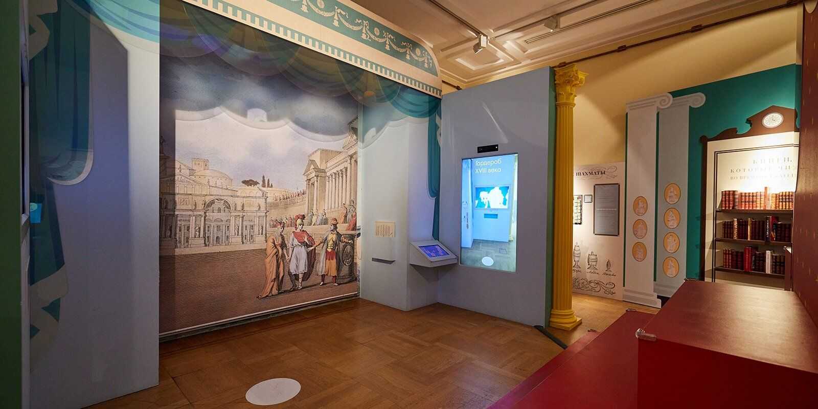 В третьем зале — все об увеселениях XVIII века. Здесь дети знакомятся с любимыми развлечениями Екатерины II. Известно, что она была горячей поклонницей поэзии, поэтому один из модулей устроили по принципу караоке. Здесь можно попробовать свои декламаторские способности — прочесть с листа оду «Фелица» Гаврилы Державина, а старания оценит цифровой двойник Екатерины — аплодисментами или покачиванием головой.