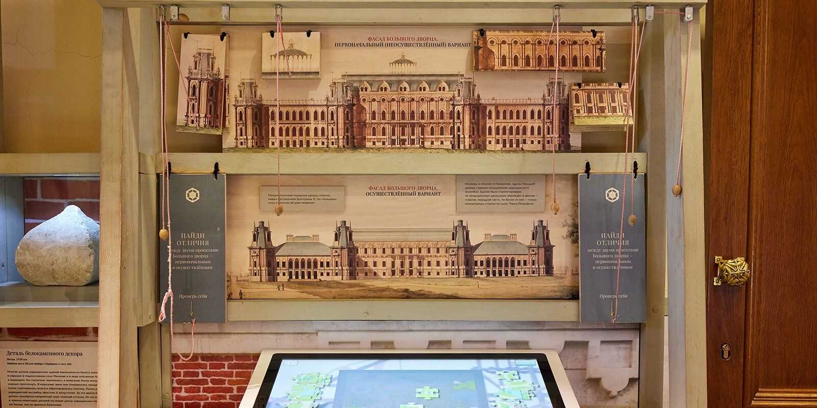 Самых маленьких ждут интерактивные обучающие игры: например, можно собрать простой пазл с изображением Большого дворца. Родителям (и вообще взрослым посетителям) здесь тоже понравится: благодаря небольшим поясняющим текстам, сопровождающим экспозицию, они легко могут стать гидами для ребенка.