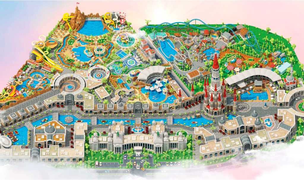 “Диснейленд” с турецким колоритом, в котором ежедневно проходят красочные представления. Парк аттракционов с американскими горками, зона аквапарка, дельфинарий, улица с магазинами, кафе и рестораны.