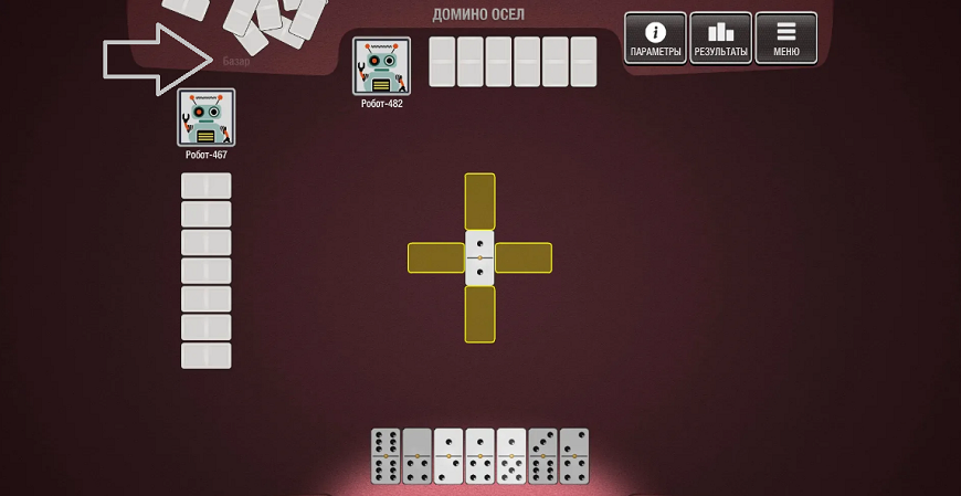 При участии двух человек каждый из соперников в начале сражения получает по 7 костяшек. Остальные фишки лежат в резерве, который также называется Базаром.