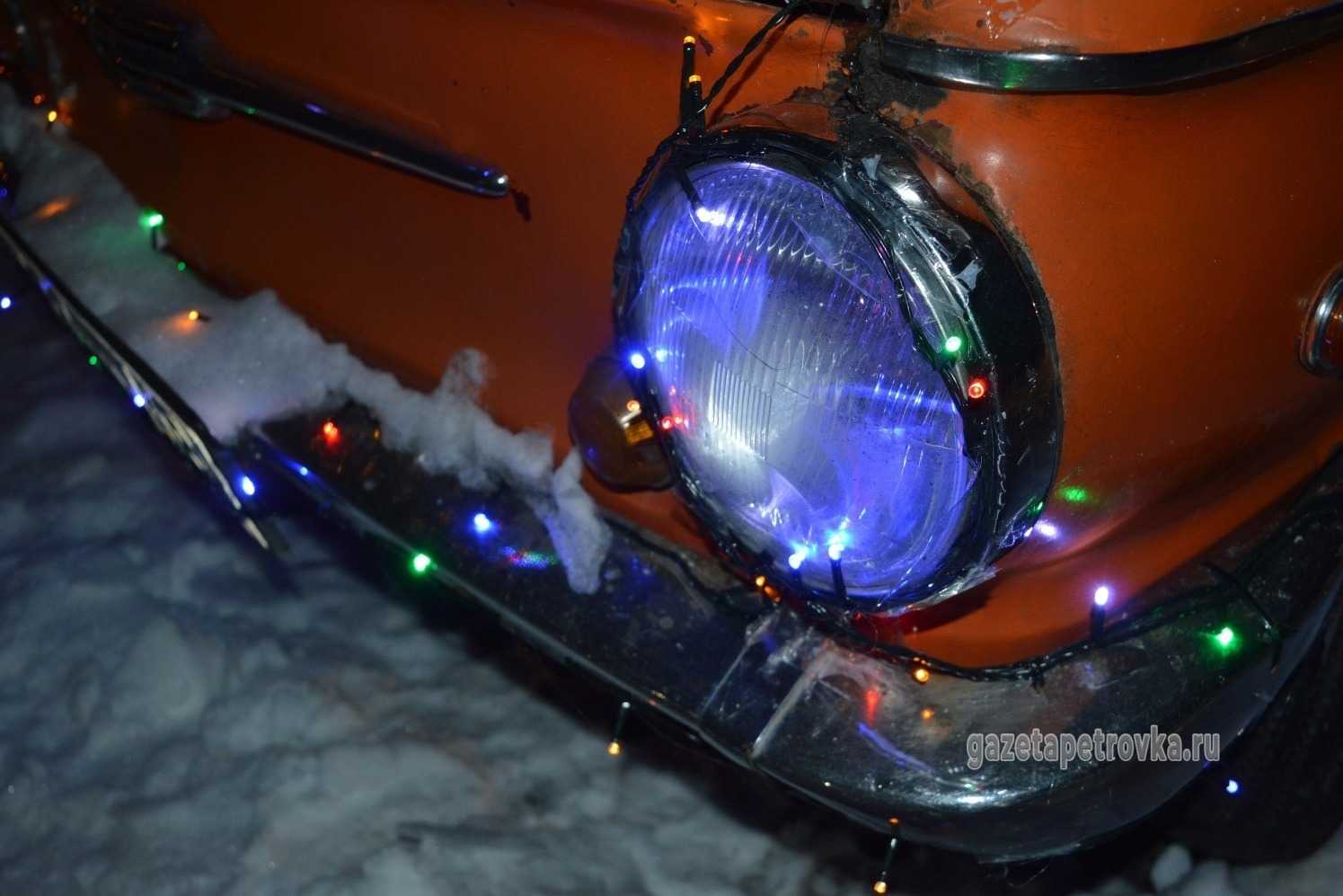 И в этот раз тоже не обошлось без гирлянды. Мигающие фонарики с помощью термоклея расположились на гранях новогоднего авто.