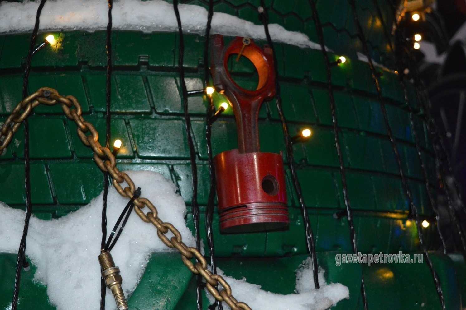 — У нас в автомастерской полно отслуживших запчастей. Шатуны, свечи зажигания, поршни, диски сцепления — всё это стало ёлочными украшениями после небольшого тюнинга. Я также покрасил их яркими красками из баллончика — золотыми, фиолетовыми, синими. Ну, и конечно же, главная новогодняя красавица должна быть сверкающей. Более 150 метров гирлянды у меня ушло на её украшение, — рассказал Дмитрий Кузнецов.