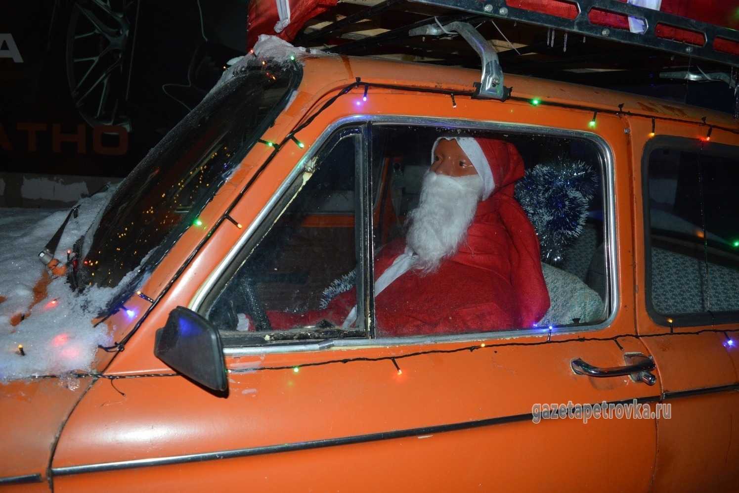 В середине декабря в центре села Петровского появились необычные арт-объекты. Праздничное настроение селянам дарит сверкающий ретро-автомобиль, за рулём которого сидит Дед Мороз, с большим подарком на крыше. Рядом сияет ёлка из шин, украшенная автозапчастями. Всю эту красоту к Новому году своими руками создал хозяин автомастерской Дмитрий Кузнецов. Он рассказал нашей газете, из чего делал украшения, и сколько метров гирлянды ушло на всё это.
