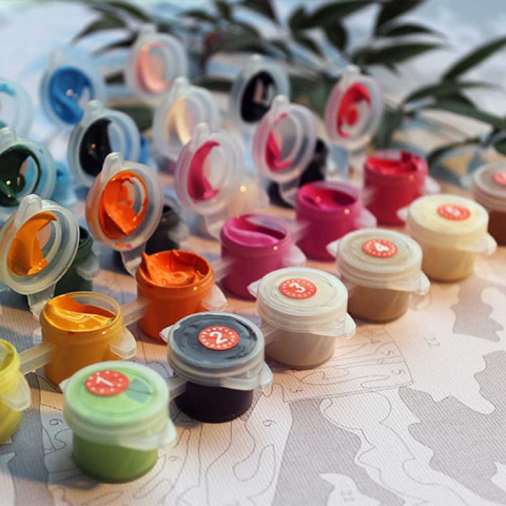 Секрет творчества кроется в том, что площадь холста содержит пронумерованные участки, на раскраску каждого из которых имеется баночка краски с соответствующим номером. Живопись по номерам с акриловыми красками производится в следующей последовательности:
