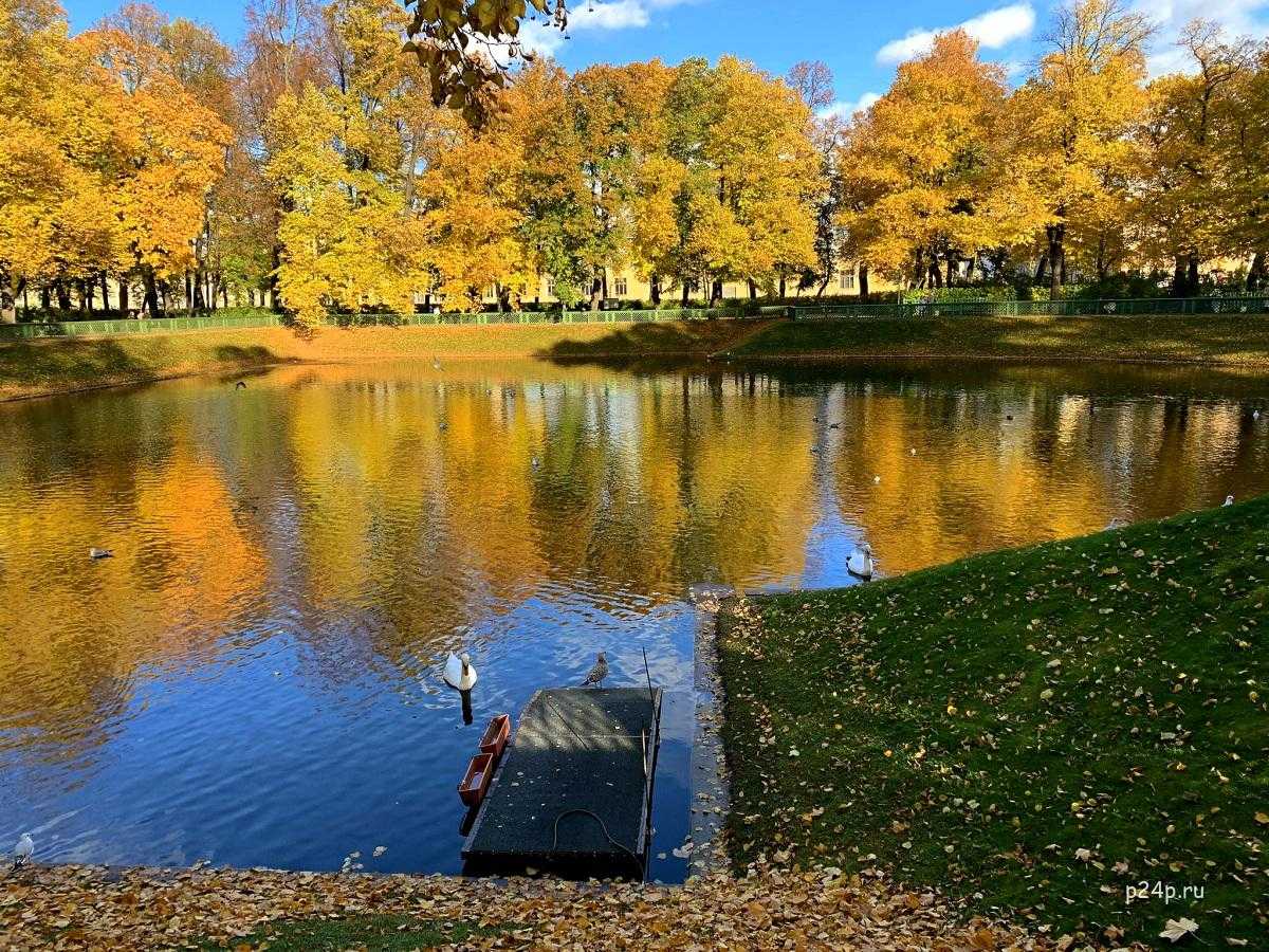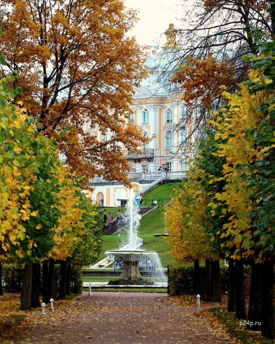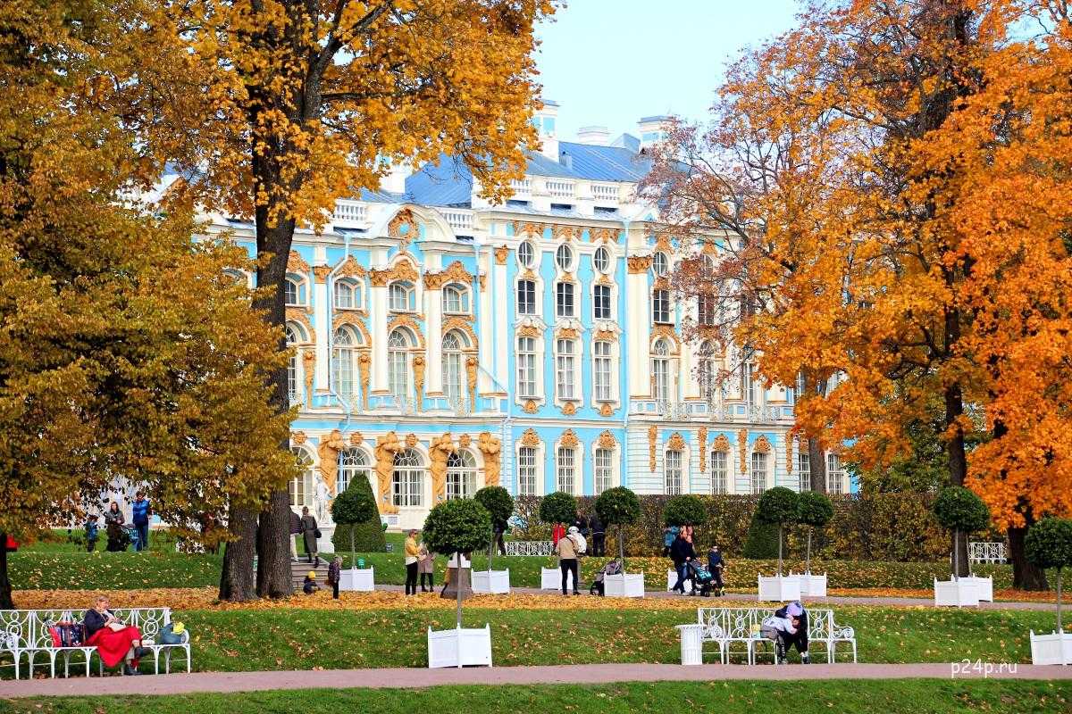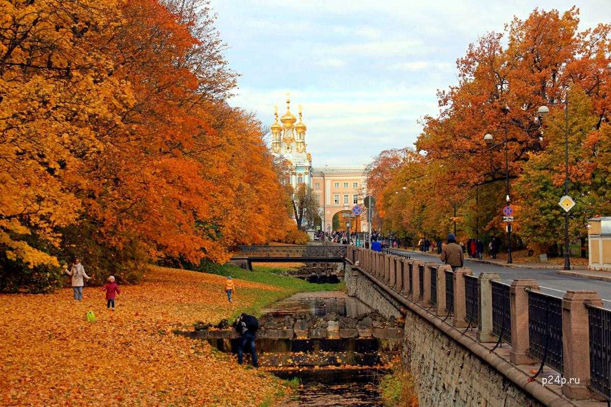 Из классических парков знаменитых пригородов Петербурга, пожалуй, самым осенним является Екатерининский парк в Пушкине. Там осенние краски особенно яркие, а на фоне Екатерининского дворца и воды всё это необыкновенно красиво.