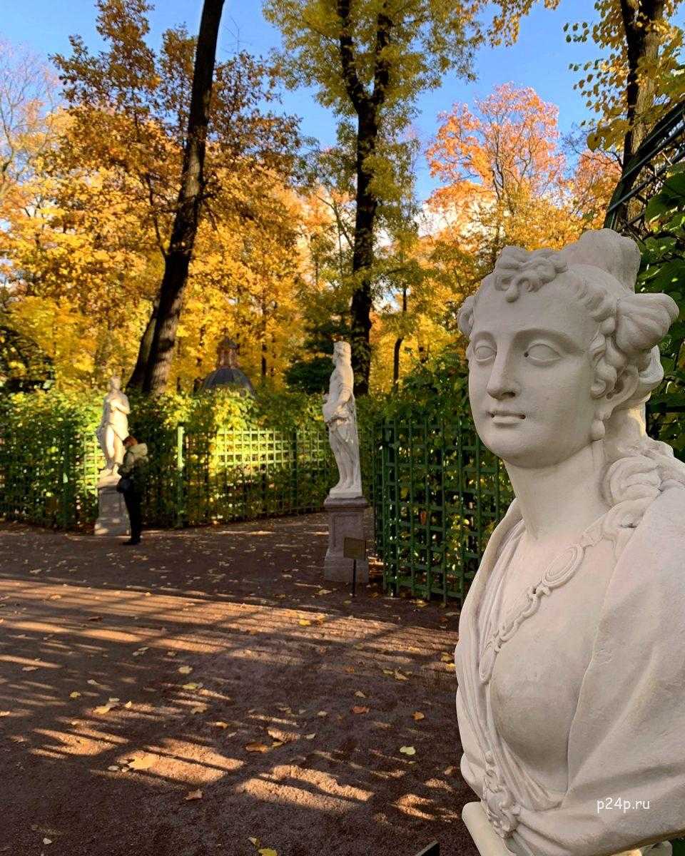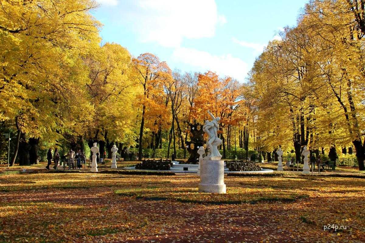 Листья на деревьях в Летнем саду опадают одни из первых в Петербурге. Так что сюда лучше приходить в первых числах октября.