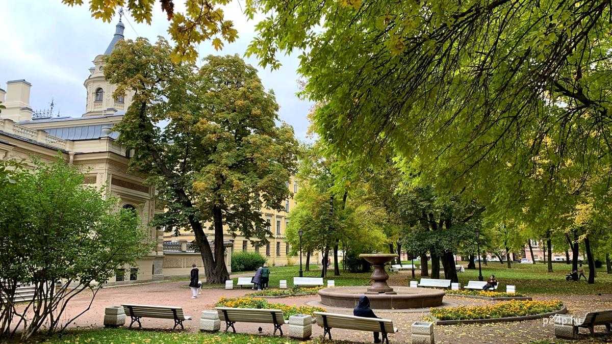 Традиционно красивую золотую листву можно застать осенью в Михайловском саду, который находится в самом центре Петербурга, в двух шагах от метро «Невский проспект», рядом со Спасом на Крови.