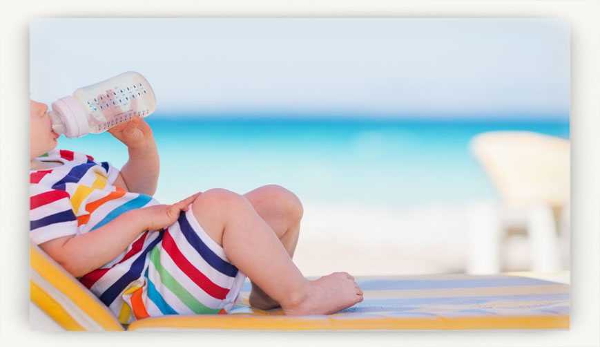 Что касается воды, то малышу нужно давать пить только бутилированную воду, причем было бы неплохо привезти ее с собой – младенцу много не понадобится. Ни в коем случае не давайте воду из-под крана, да и сами старайтесь ее не пить.