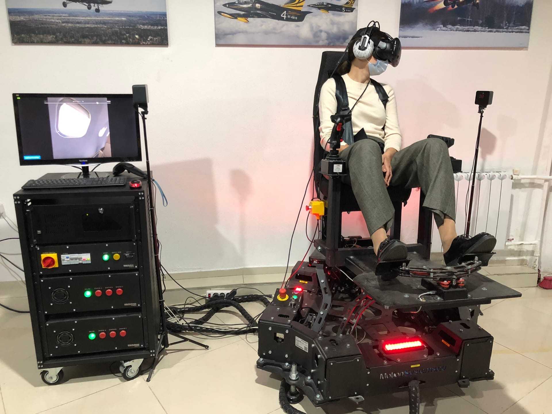 Здесь есть полнокупольная система визуализации. Она предоставляет пилоту углы лишь немного меньше, чем из кабины реального самолета, а профессиональная динамическая платформа передает пилоту ощущения изменений скорости во всех шести плоскостях.