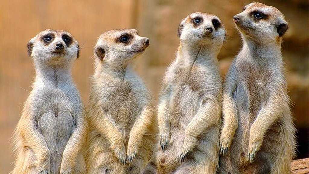 Сурикаты обитают в пустынных жарких местностях. Милыми их делает не только внешность, но и манеры. Напоминающие мангустов зверушки умеют стоять на задних лапках, забавно складывая лапки на животе. Несколько сурикатов, стоящих таким образом, представляют собой крайне умилительное зрелище.