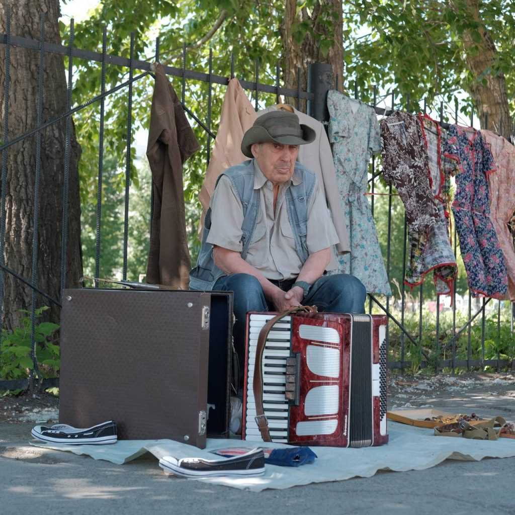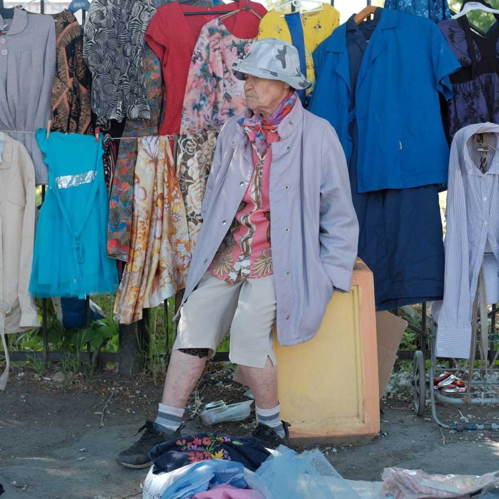 Бабушки и дедушки продают вещи с железных прилавков или просто с картонок на земле. У них такие низкие цены, что торговаться бессмысленно.