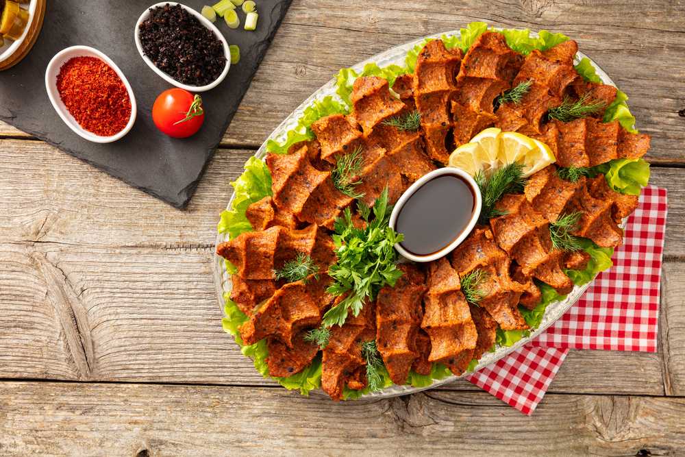 Чи кёфте (çiğ köfte) — острая шаурма с булгуром и специями, типичный турецкий фастфуд, встречающийся в Стамбуле на каждом шагу.