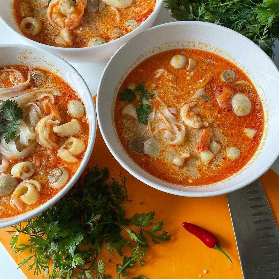 - Том Ям – суп на кокосовом молоке (с рыбой, курицей или морепродуктами).