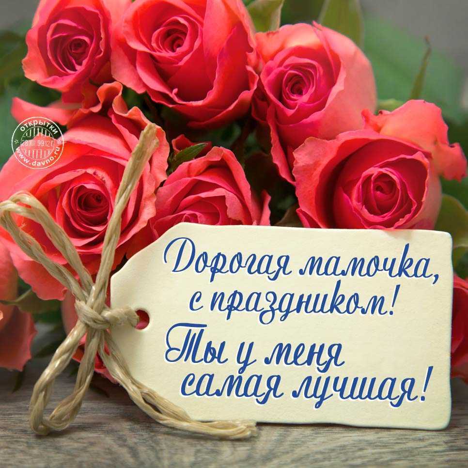 Милая моя, любимая мамочка! В праздничный День матери прими от меня низкий поклон за то, что подарила мне жизнь! Благодарю тебя за ежедневную заботу, тёплое внимание, бесконечные молитвы о моём здоровье и благополучии. Желаю тебе возглавлять и хранить наш яркий семейный очаг долгие-долгие годы. Здоровья тебе и любви!