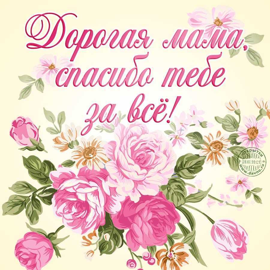Любимая мамочка, сегодня в твой день я хочу сказать спасибо за то, что ты моя мама. Твои руки всегда обнимают меня, когда я нуждаюсь в утешении, твое сердце всегда понимает, когда мне нужен друг, твои нежные глаза становятся строгими, когда мне необходим жизненный урок. Твоя сила и твоя любовь руководят мной, и дают мне крылья для полета. Счастливого дня, мама, люблю тебя!